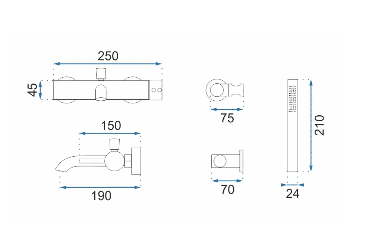 BATERIA WANNOWO-PRYSZNICOWA ŚCIENNA 1-UCHWYTOWA LUNGO CHROM B6641 REA PODLASIAK