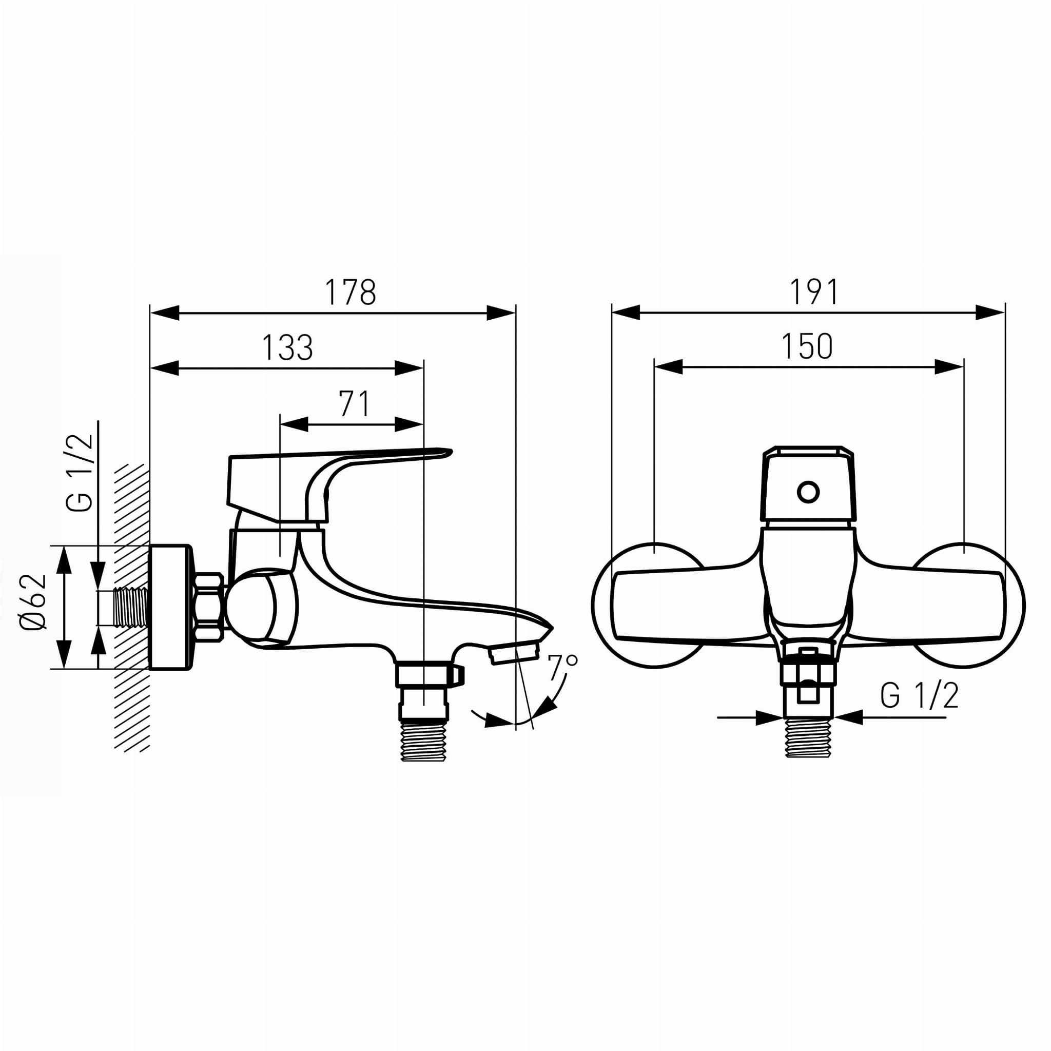 BATERIA WANNOWO-PRYSZNICOWA ŚCIENNA 1-UCHWYTOWA TIGA VERDELINE CHROM BTG1VL FERRO