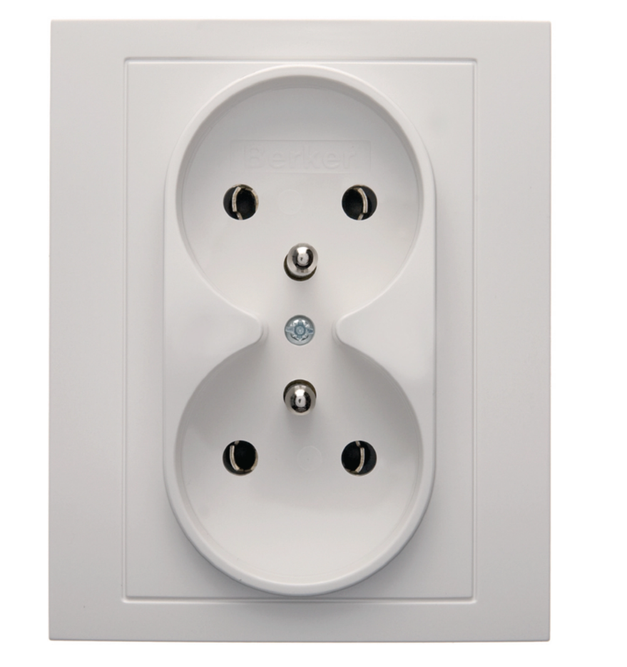 GNIAZDO PODWÓJNE B.KWADRAT Z UZIEMIENIEM BIAŁY 5361838989 HAGER