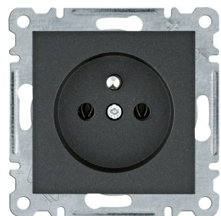 Gniazdo pojedyncze z uziemieniem w kolorze czarnym ,o numerze katalogowym WL1023. Standardowe gniazdo elektryczne pojedyncze z bolcem uziemiającym. Do kompletu wymagana ramka.