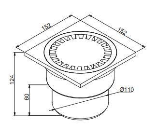 KRATKA ŚCIEKOWA PROSTA FI110mm 150x150mm CZARNY C104C PREVEX