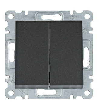 Łącznik świecznikowy, podwójny w kolorze czarnym z serii lumina, marki Hager o numerze katalogowym WL0043. Łącznik wyposażony w dwa klawisze, umożliwiający łączenie dwóch niezależnych obwodów oświetleniowych ze wspólnego (jedno) zasilania. Używany najczęściej do załączania żyrandoli (podzielonych na dwie strefy). Do kompletu wymagana ramka.