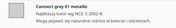 - Kolor: Connect grey 01 metallic Najbliższy kolor wg NCS: S 2502-B