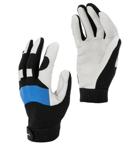 - Wykonanie części chwytnej z jednego kawałka skóry zwiększa trwałość rękawicy