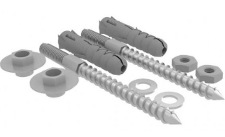 Komplet do umywalki służy do mocowania umywalek naściennych. Plastikowe elementy maskują miejsca, w których widoczne są zakończenia śrub.