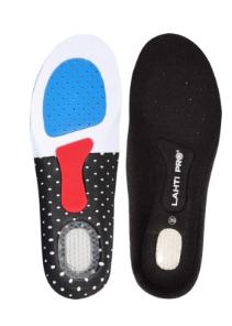 Wkładki zaprojektowane specjalnie dla osób uprawiających intensywny tryb życia. Ich powierzchnia pokryta jest przewiewną tkaniną, co zapewnia stopie odpowiedni komfort i zmniejsza potliwość. Poduszka żelowa w tylnej części wkładki amortyzuje piętę przed zbyt silnymi uderzeniami. Rozwiązanie to jest pomocne również w zwalczaniu bólu spowodowanego ostrogami piętowymi, poduszka żelowa łagodzi nacisk na środkową część pięty, miejsce gdzie z reguły występują ostrogi. Wstawka z czerwonego tworzywa ma zadanie podnieść nieco środkową część stopy. Niebieska część wkładki to miękka poduszka, która ma za zadanie prawidłowo rozłożyć nacisk ciała na całą stopę. Wkładki do butów sportowe Lahti Pro L90306 wykonane są z trójwarstwowej konstrukcji tkaniny poliestrowej EVA (kopolimer etylenu i octanu winylu), wstawki TPR (Thermo Plastic Rubber, czyli gumy termoplastycznej) oraz lateksu o grubości 4 milimetrów. Zaletami wkładek Lahti Pro L90306 jest ich lekkość, perforowana powierzchnia, amortyzacja śródstopia, wyprofilowane podparcie łuku wzdłużnego, amortyzator pięty.