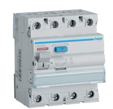 WYŁĄCZNIK RÓŻNICOWOPRĄDOWY RCCB 3P+N 25A 30mA 6kA AC CDC425J HAGER